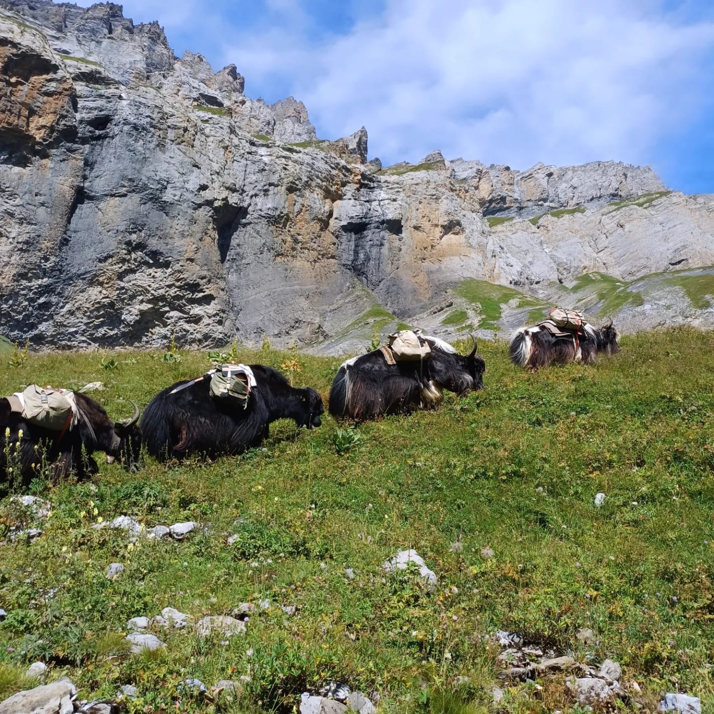 Le yak fait partie de la famille des bovins. Il est originaire des hauts plateaux de l’Himalaya où il vit entre 3000 et 5000 mètre d’altitude. Il est capable de passer des cols à plus de 6000m ou les températures sont relativement basses. Les troupeaux peuvent parcourir 12 à 20 km par jour, avec des charge de allant de 50 à 80 kg. On trouve aussi ses animaux dans d’autre pays d’Asie comme la Mongolie, Chine et bien d’autre pays encore.